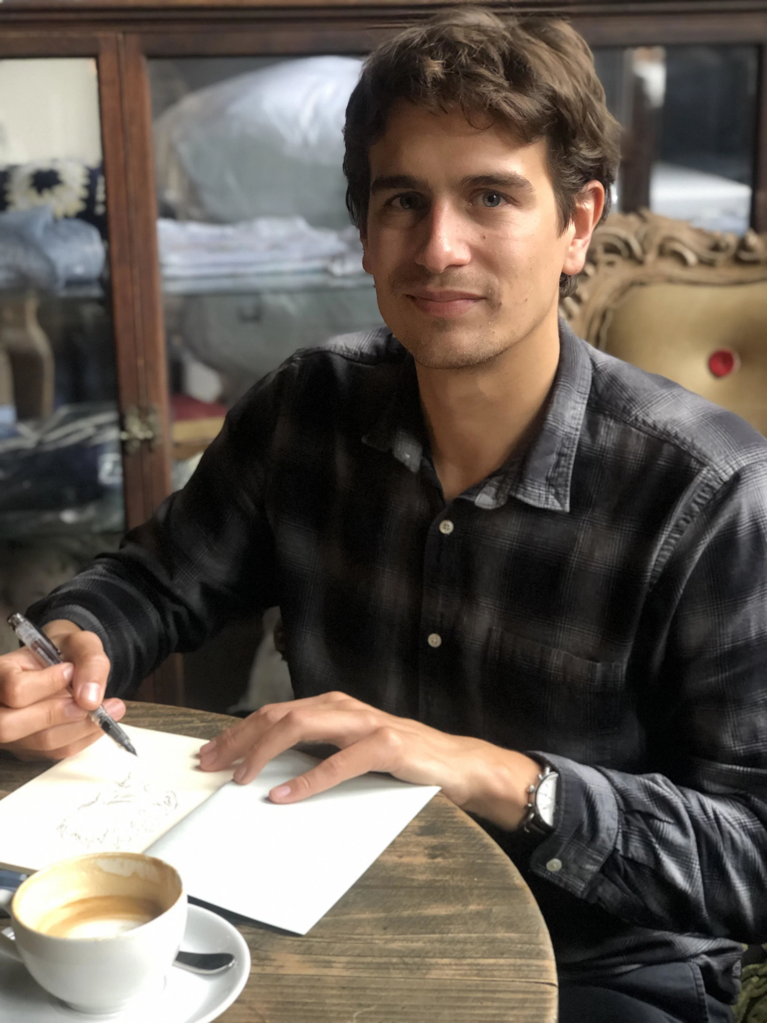 David was born (1990) and raised in Bloemfontein. He completed his BA in Fine Arts at the University of The Free State in 2012. He has since then been a full time award winning artist and picture book illustrator. He has exhibited at many commercial galleries and three museums in South Africa and also had an open studio / book launch in France during an art residency at Draw International, Caylus. His work is in private collections all over the world.